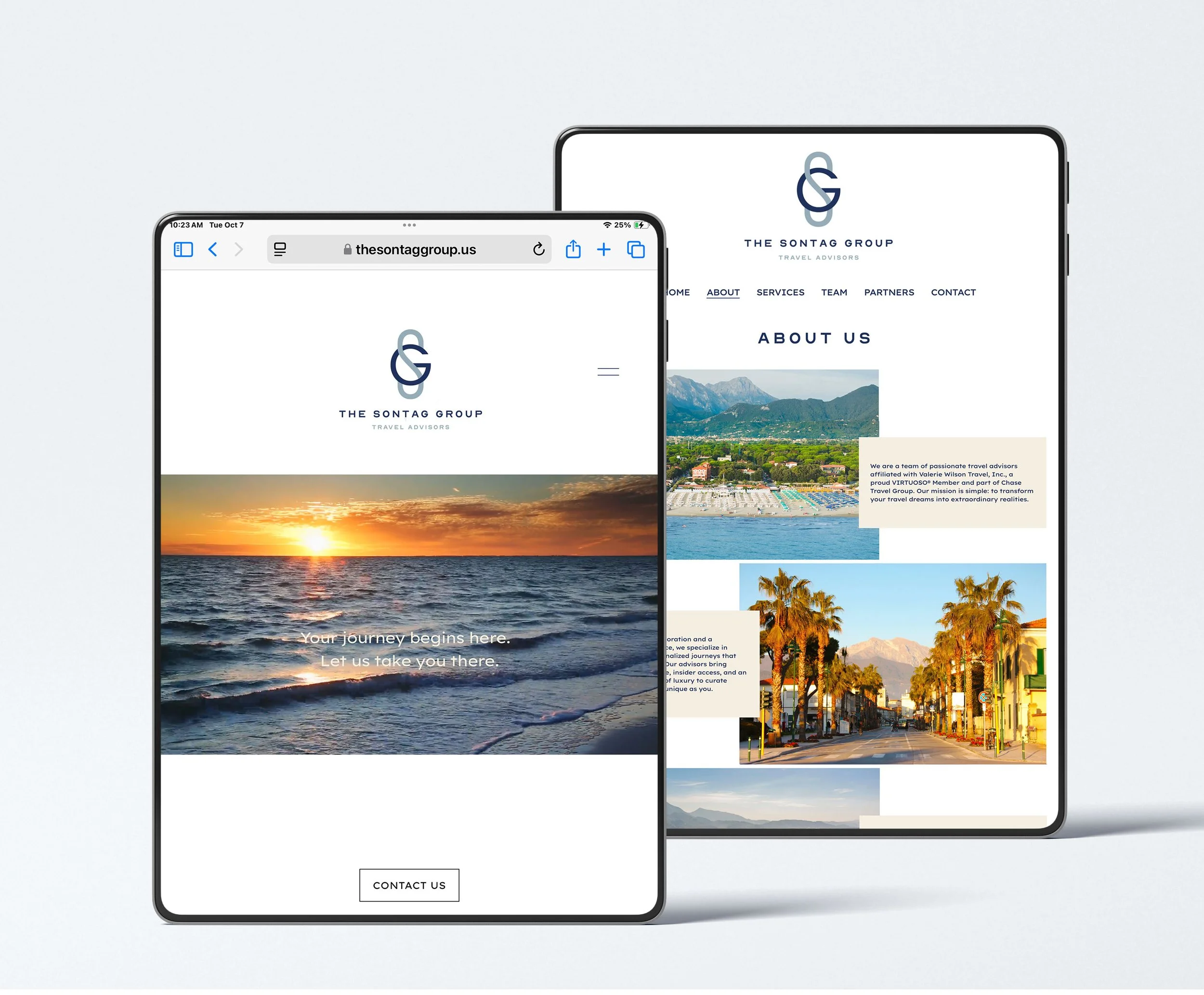 Jocelyn Sontag leads a team of 16 travel advisors affiliated with Valerie Wilson Travel, Inc., a proud VIRTUOSO® member and part of the Chase Travel Group. Looking to refresh her brand, Jocelyn envisioned a new logo, website, team business cards, and fun merchandise for clients.
